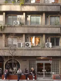 A Western-style building where a manual elevator and galleries coexist, like a secret base for artists.