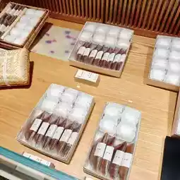 The shop has a narrow layout, and customers line up in order. Each group of customers is assigned a staff member who not only helps them select their desired wagashi but also handles packaging and payment. Thanks to the elongated counter design, the purchasing process is quite organized. However, with so many tempting wagashi options, it takes some time to decide which ones to bring home.