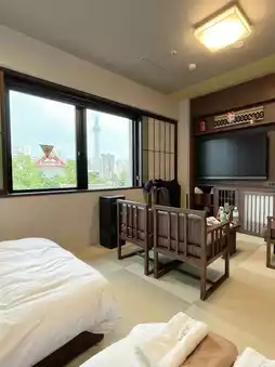 Our first night was in a spacious triple room with two single beds and one double bed, perfect for 2 adults and 2 kids plus one more adult comfortably! There are plenty of cute shops nearby for photo ops, and renting a kimono for beautiful pictures is super convenient. On the last night, we upgraded to a room with views of Tokyo Skytree and Senso-ji Temple, so we could enjoy the scenery right from the bed 😝 The room had a soothing Sichuan pepper aroma diffuser that my mom loved and couldn’t put down! Staying here in Tokyo means you can handle eating, drinking, and sightseeing all in one place. Definitely staying here again next time! 💖