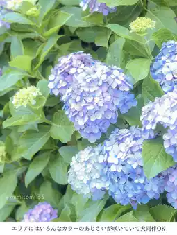 with blue, pink, and white (Annabelle) flowers, it's perfect for flower viewing!