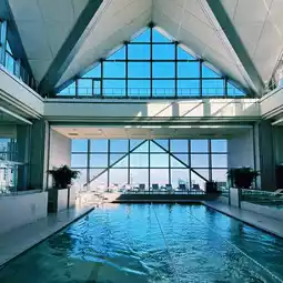 The luxurious infinity pool is located on the 47th floor of the hotel, with floor-to-ceiling windows offering panoramic views of Tokyo and a distant view of Mount Fuji. The design is simple, grand, and highly modern. During the day, you can bask in the natural light streaming through the reinforced glass ceiling, and when night falls, looking up reveals a starry sky that echoes the neon-lit nightscape of the city.