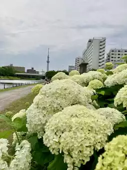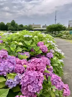 The biggest attraction of this park is the opportunity to admire and photograph hydrangeas with the Tokyo Skytree in the same frame, which draws countless local Japanese and tourists from around the world to come and enjoy the flowers, take photos, and check in. Some even specially wear kimonos to take photos with hydrangeas and the Skytree as the background, creating beautiful memories of their trip. 🇯🇵👘💐