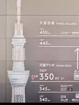 The observation decks are structured in two layers at 350 meters and 450 meters above ground, offering a vast panorama where you can see the cityscape of Tokyo and the Kanto Plain during the day, and on clear days, even Mount Fuji 🗻 in the distance. At night, the city transforms into a sparkling jewel box, providing a special experience ✨.