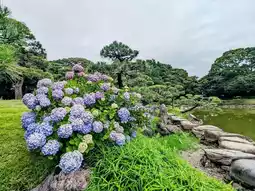 Getting to Kiyosumi Garden is very convenient. You can take the Tokyo Metro Hanzomon Line or the Toei Oedo Line to Kiyosumi-shirakawa Station. From the station, it’s a 3-minute walk to the garden entrance. The admission fee is very affordable at only ¥150, allowing you to visit this Japanese garden famous for its notable stones and enjoy the sea of blooming hydrangeas throughout the garden.