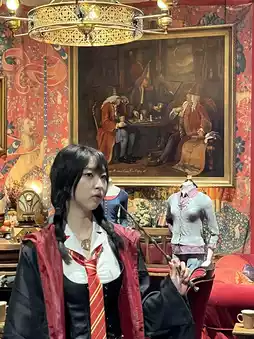 Most people wear school uniforms, but if you wear Gryffindor or Slytherin robes, the photos come out amazing! The colors match well and are vibrant.