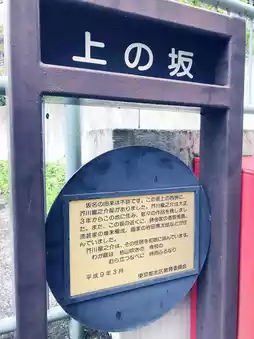 The origin of the slope's name is unknown. On the west side of the slope was Ryunosuke Akutagawa's residence. He lived here from 1914 and created numerous works. Near this slope also lived metal artist Hideaki Katori, lacquer artist Yang Cheng, and painter Sentaro Iwata.