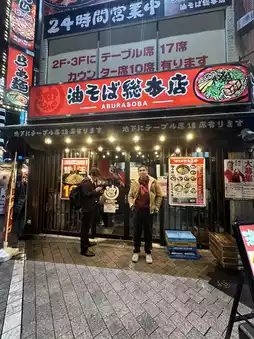 For those tired of soup-based ramen, you must try “Abura Soba,” the famous dry ramen in the Shinjuku area. This shop is open 24 hours! The shop may look simple, but it’s filled with an enticing aroma right from the entrance.