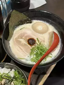 The atmosphere inside is warm, filled with Japanese customers stopping by quickly. This meal is satisfying, delightful, and budget-friendly. Ramen lovers must not miss it!