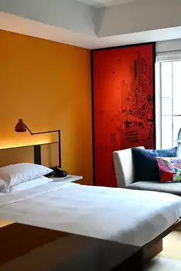 The hotel features a design-focused, trendy style. Even in the expensive Ginza district, rooms are 35 square meters and come with bathtubs ๐. The hotelโs color scheme is unique, with a refined and comfortable layout. Each floorโs decoration incorporates different traditional Japanese craft elements, full of vitality~