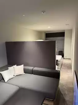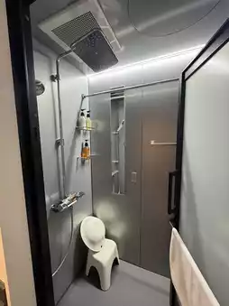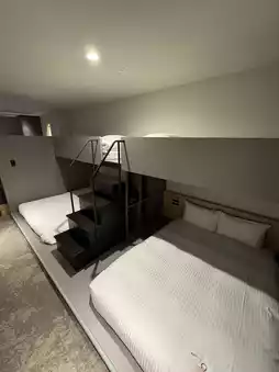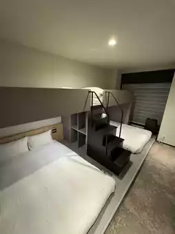 and there are shelves by the beds, designed to be 'comfortable to live in' even if your luggage increases during a long stay!