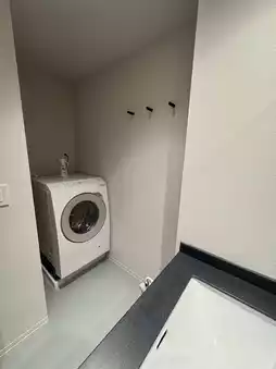 and the room comes with a washing machine, kitchen, and refrigerator.