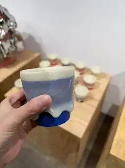 The idea started when Kuwata kneaded glaze with an udon-making machine. The concept of serving "kiln-fresh udon" in bowls just taken out of the kiln unexpectedly evolved into an exhibition.