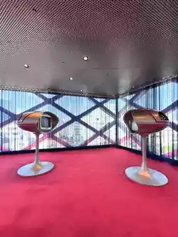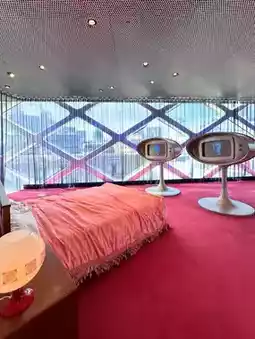 Set in a space styled like a mid-to-late 1960s film set,
