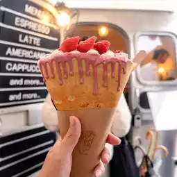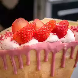 The menu item I ordered was a crispy fresh strawberry crepe with generous whipped cream. This item is very indulgent, but totally worth it.
