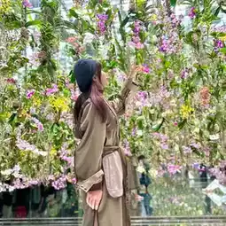 In the exhibit where real flowers gently fall from above, the floral fragrance and fantastic lighting instantly separate you from reality. Perfect for photo ops! 🌸