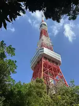 In the heart of Minato City, Japan’s national pride shines through. The iconic Tokyo Tower, often called the “Eiffel Tower of the East,” rises beside a peaceful Buddhist temple, creating a surreal blend of modern architecture and ancient tradition. The contrast is breathtaking—red steel and sacred wood standing proudly together under the blue sky.
