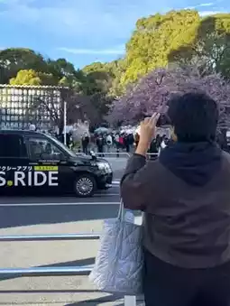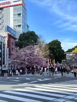 Here, the cherry blossoms are in full bloom, very lush and large trees. Because it is one of the first places to bloom, it is very popular among tourists. There are a lot of people. There are two large cherry trees here, one on each side. Seeing them in person, the flowers are very beautiful.