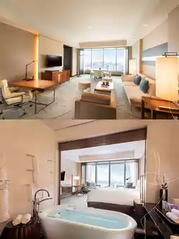 Standard rooms start at 40㎡, featuring Japanese minimalist style and smart control systems, bathrooms equipped with deep soaking tubs🛁 and Diptyque amenities. Recommended "Bay View Room"—open the curtains at dawn to see Rainbow Bridge under the sunrise, maximum healing power!
