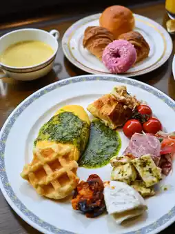 Breakfast is served buffet style, and the omelets made by the chef right in front of you are not only beautiful to look at but also fluffy and very delicious🤤