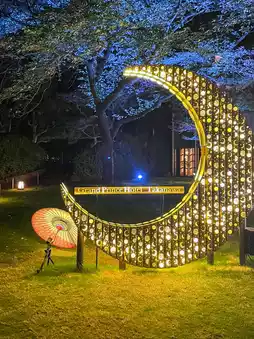 This beautiful illumination is called Takanawa Jūrokuyō, which is a modern arrangement by the Grand Prince Hotel Takanawa of the Edo period culture of waiting for the moonrise to worship the moon𓂃𓈒𓏸