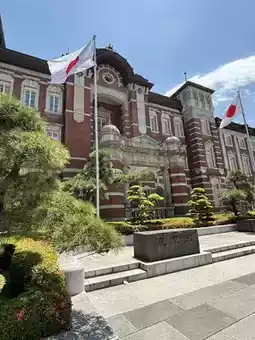 The beautiful bright red brick station building, "Tokyo Station Marunouchi Building."