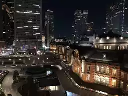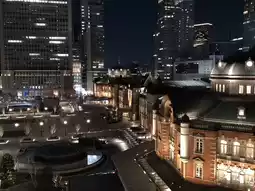 As night falls, Tokyo Station begins to show its most enchanting side. Warm yellow lights shine from inside the building and precisely illuminate the exterior walls, outlining every red brick and detail clearly. The domes and spires look especially magnificent under the lights, complementing the twinkling lights of the surrounding skyscrapers, creating a romantic atmosphere that is both classical and modern. From a high vantage point, the brightly lit station and busy railways appear vibrant in the night, showcasing the energy of Tokyo, the city that never sleeps.