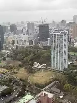 On the ground, I felt the immense size and grandeur of Tokyo Tower. The red and white tower stood out vividly against the slightly gloomy sky. The surrounding cherry blossom trees adorned the tower with a gentle beauty, the red iron framework contrasting beautifully with the pink and white blossoms, creating a stunning picture. I deliberately took photos of the tower from several angles, and one of the shots included the tower alongside a traditional Japanese building, showcasing the charm of Tokyo’s blend of old and new.