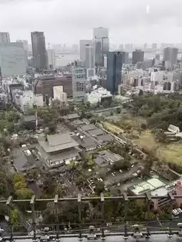 Next, I took the elevator straight up to the observation deck. From this height, the entire cityscape of Tokyo was laid out before me. Elevated highways and dense clusters of buildings intertwined, displaying the prosperity and vibrancy of this international metropolis. I also spotted Zojoji Temple, a historic site located at the foot of the tower. Viewed from above, this ancient temple appeared especially serene and dignified, surrounded by modern architecture.