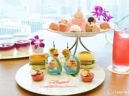 The afternoon tea features sweets recreated from Royal Hawaiian recipes, along with the chef’s original creations that build a unique Hawaiian afternoon tea world inspired by the Pink Palace. The view from 180 meters above ground is stunning, and some seats offer a view of Tokyo Tower.