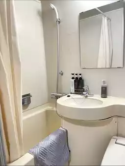 📍Olympic Inn Kanda meets all the standards. It's clean and well-equipped with all the amenities you need, including a kettle, heater, air conditioning, shampoo and conditioner, hair dryer, refrigerator, toilet with bidet, and TV.