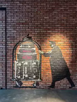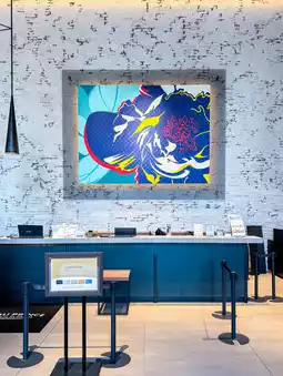 ① An artistic space. Wall art and sculptures are found in various places, including the lobby, hallways, rooms, and public bath.