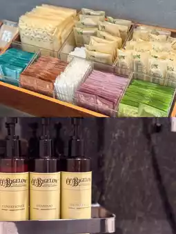Skin care amenities are also available.