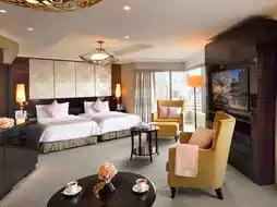 Even standard rooms are over 45 square meters. Attention to detail shines through, with L'Occitane bath amenities and Nishijin-ori footstools.