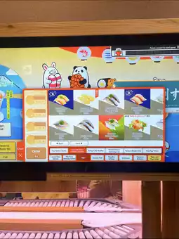 - When it's your turn, the staff will escort you to your table. Another difference from Thailand is the ordering screen. It's as large as the one in the picture, allowing two people to order together. There are also games to play while you wait for your food.