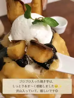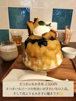 A 3-minute walk from Tsukishima Station, you can enjoy fluffy shaved ice made with natural ice from Mt. Fuji and honey-sweet roasted sweet potatoes!