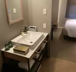 The rooms feature a sleek and modern design, with gold accents in the furniture and decor. The most affordable room is perfect for solo female travelers. While the bedroom isn’t particularly spacious and the sofa is designed for one person, the amenities are well-equipped, including a spacious standalone vanity and closet—features that are sure to please women.