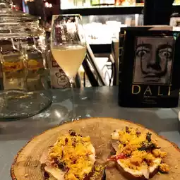The attached restaurant offers Spanish and Italian cuisine in a charming atmosphere reminiscent of bars from foreign films 🍸. I exchanged the welcome drink coin for wine and decided to enjoy a small appetizer as well.