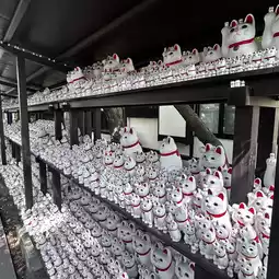 · 11:00 AM - The Wave of Luck: Entering the temple grounds is breathtaking. Thousands of white maneki-neko figurines line the shelves, each left as a token of gratitude. It’s uniquely mesmerizing and incredibly photogenic.