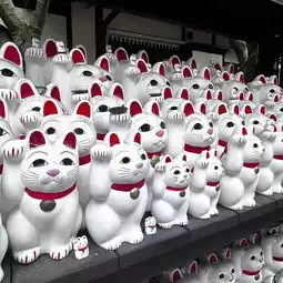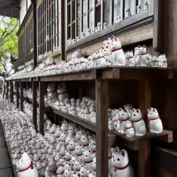 Beyond the main temple hall, you'll find dedicated shelves housing thousands of white maneki-neko figurines. This isn't a kitschy display; it's a solemn collection where visitors leave a cat as a token of gratitude for answered prayers. The sheer scale is awe-inspiring and creates a uniquely tranquil atmosphere.