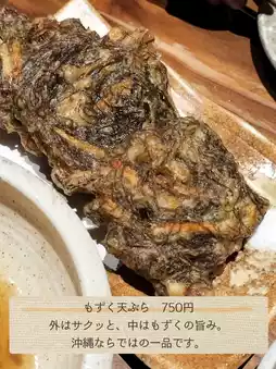 Crispy on the outside, rich with the delicious flavor of mozuku seaweed on the inside.
