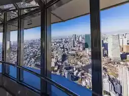 The Main Deck offers a 360-degree panoramic view of Tokyo, including Tokyo Bay, Tokyo Skytree, and Mount Fuji on clear days. It also features the "Lookdown Window," a glass floor for a thrilling high-altitude experience.