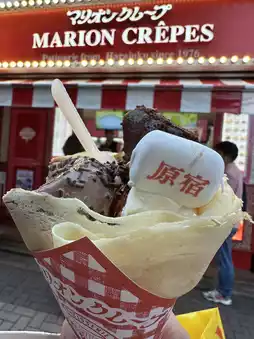 - Takeshita Tong crepe is an authentic must-eat, like Hong Kong Women's Street but more trendy, when there are many people to pay attention to personal belongings