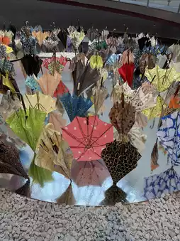 • A visually and poetically stunning installation where approximately 300 umbrellas "soar like migratory birds" in the space