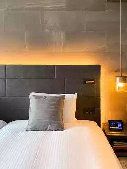 The rooms feature a simple, modern design, evoking a sophisticated, sophisticated, and relaxing atmosphere.