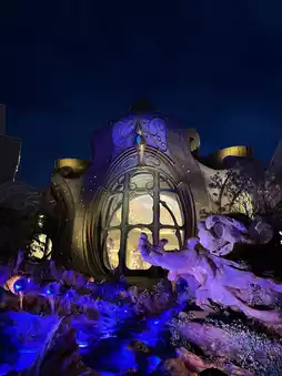 The food offerings are top-notch 🍴🐙. Don't miss unique treats like the "Gyoza Dog," adorable popcorn buckets, and seasonal menu items. At night, the illuminated harbor and romantic shows are simply magical 💖.