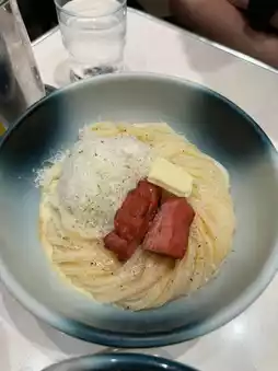 I think many of you have probably seen reviews of this udon restaurant, or perhaps someone has followed in Mae Chom's footsteps. 🍜 I actually went there a while ago and was hesitant to review it, as I'm personally pretty indifferent. 😐 But it's a personal preference, so I don't get dramatic! But I'm reviewing it in case anyone wants to try it, as it's incredibly popular! This restaurant is called Menchirashi. They serve fresh udon noodles, made fresh by the chef himself. Their signature dish is the Cabonara✨, which comes with raw egg and bacon 🥚🥓 and is topped with cheese 🧀. It's priced at 900 yen. As I mentioned, it's delicious, but nothing spectacular. It gets a bit greasy after a while, I tell you! 😅 // Another dish I ordered was the Kitsune, which is a large sheet of fried tofu. You can choose between hot or cold udon. It's priced at 800 yen. I was so-so, even though I don't know if I should review it, lol. Everyone has different tastes, after all. My favorite udon restaurant is Tsuru Ton Tan!!!