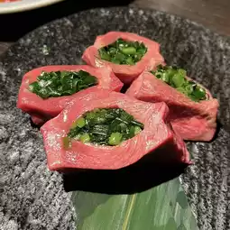 ⭐ A must-try is the Grilled Beef Tongue Stuffed with Spring Onions, beautifully presented. The perfectly thick, grilled tongue is fragrant and tender, contrasting with the freshness of the chopped spring onions for a truly unique and satisfying experience.