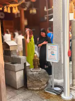 When it comes to money laundering, they actually launder money. The money laundering well, guarded by a statue of the deity, is a popular spot. Money is placed on a sieve, rinsed with well water, dried, and placed back in a wallet as a money shrine. It's said to increase financial and financial luck. The long lines daily offer a good indication of its effectiveness. There's also a statue of Fukurokuju (Fukurokuju) here. Don't forget to touch his head after your visit, and let his kind smile bring you good fortune.