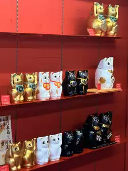 Because of Gotoku-ji Temple's popularity, a maneki Neko (Lucky Cat) economy has blossomed in the surrounding area, with shops selling hand-painted artwork, maneki Neko egg cakes, and maneki Neko T-shirts. Even local park signs have incorporated maneki Neko.