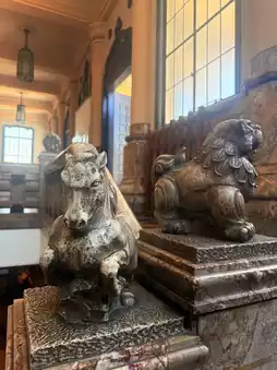 While exploring the area, you'll find numerous animal sculptures, including lions, horses, peacocks, and elephants. The introduction even states that the building houses the Four Sacred Beasts: Azure Dragon, Vermillion Bird, White Tiger, and Black Tortoise. However, despite searching for a long time, I couldn't find any.